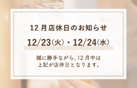 誠に勝手ながら、2月は火曜と水曜が店休日となります。(祝日を除く)