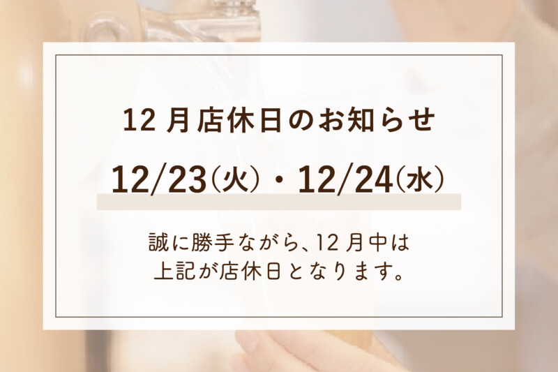 誠に勝手ながら、12月は12/23(火)・12/24(水)が店休日となります。
